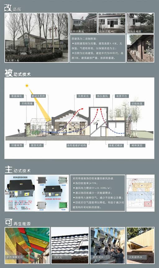 “零舍”从乡村可持续发展的未来出发,探讨了低成本近零能耗、低技术本土建造、多模式装配式体系的乡村近零能耗建筑技术与模式。建筑综合节能率达到80%以上(近零能耗建筑要求建筑综合节能率≥60%)。