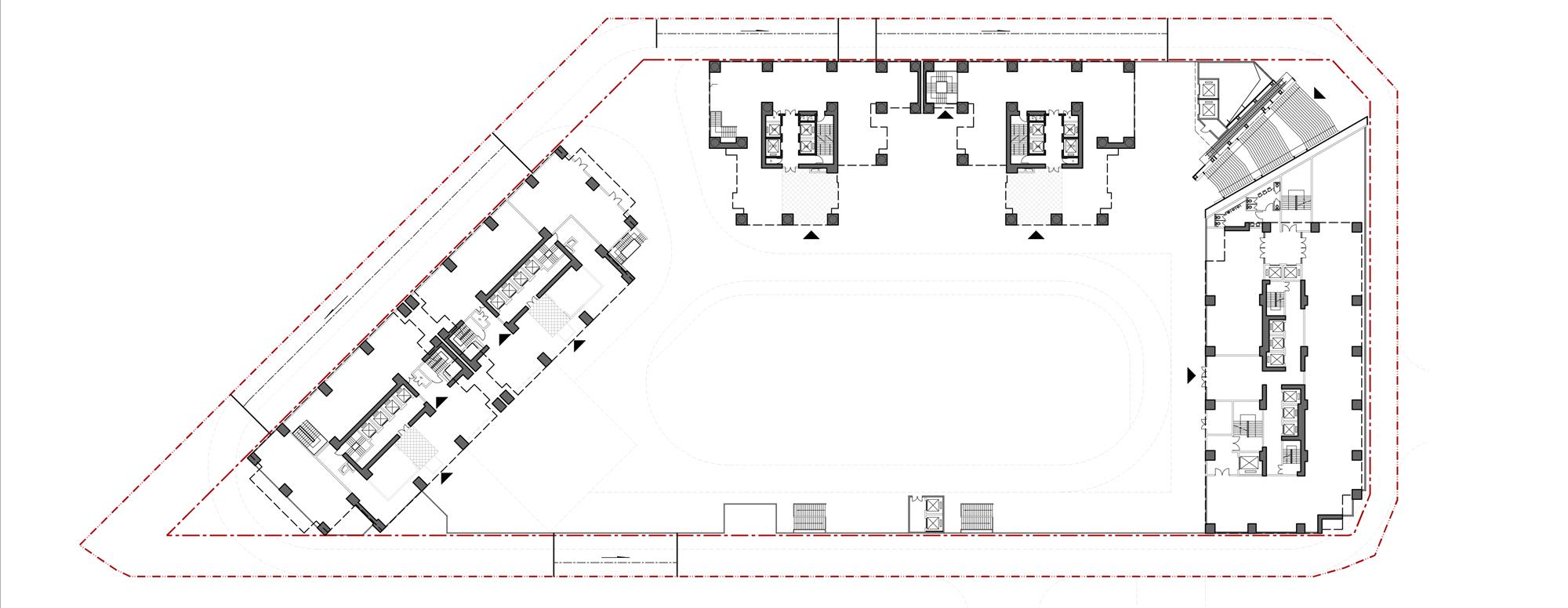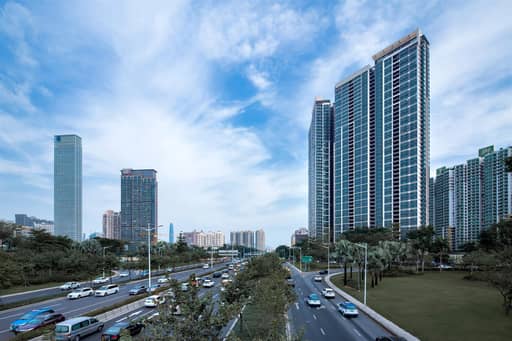深圳金领假日公寓位于福田南路和滨河大道交汇处,地处土地资源稀缺的皇岗口岸片区。项目总用地面积约 12600 ㎡,总建筑面积约 182600 ㎡,由 3 座超高层塔楼及一层裙房(局部三层)、四层地下室、一层半地下室组成。如何在有限用地内平衡容积率和日照、视野、城市友好性、居住价值,提升城市居住品质,是金领假日公寓核心设计难点。项目经过 7 年的建设周期,于 2019 年 12 月顺利落成竣工。